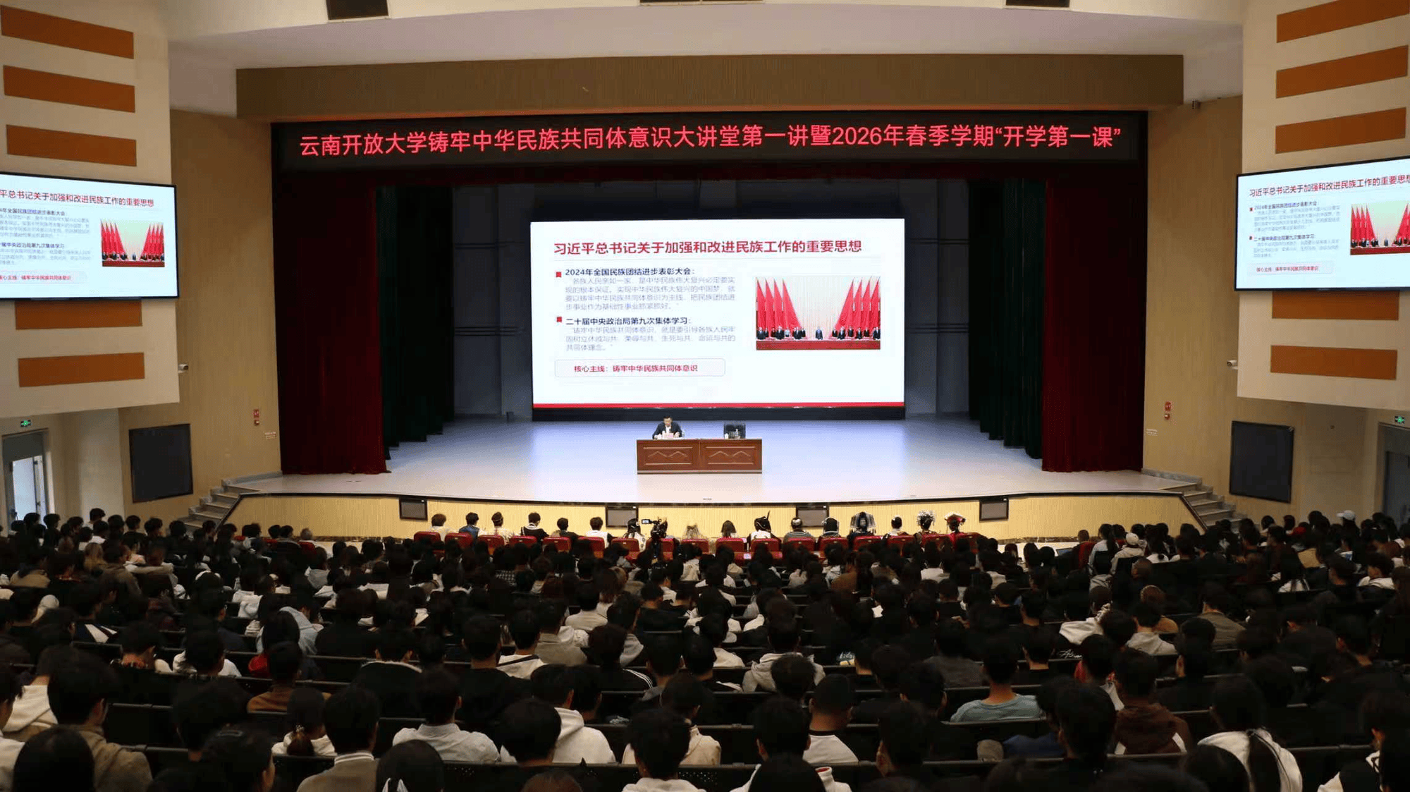 为指导广大(da)家(jia)生厚植家(jia)国情怀(huai),推(tui)动民族勾(gou)结前(qian)进创(chuang)建工作深入开展,3月17日(ri)下午,云南(nan)开放大(da)学以线上线下结合的体式格局,正在呈(cheng)贡校区先(xian)生会堂举办“铸牢(lao)中华民族共同(tong)体认识大(da)讲(jiang)堂”第一讲(jiang)暨(ji)2026年春季学期“开学第一课”。