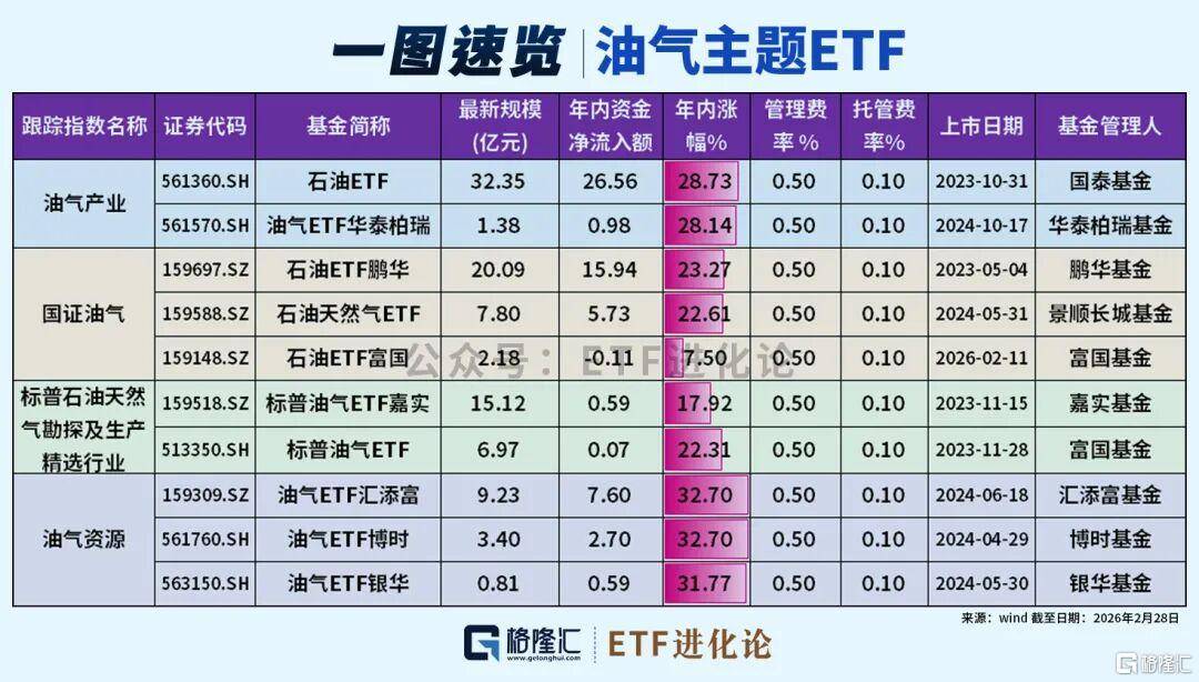 资金借道ETF流入油气板块。2026年开年以来,超60亿(yi)元资金净(jing)流入油气ETF,个中石(shi)油ETF(561360)、石(shi)油ETF鹏华(159697)分别得到了26.56亿(yi)元、15.94亿(yi)元的净(jing)流入。
