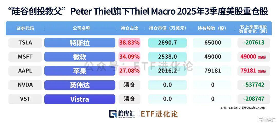 最(zui)新披露的美国13F文件显示,彼得·蒂尔旗下蒂尔微观基金2025年四季度已清仓苹果、微软、特斯(si)拉等所有美股持仓。