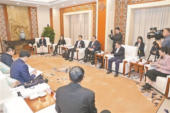 | 10日晚,财政部有关部分担任(ren)人与广东团代表进(jin)行面对面交(jiao)换(huan) 羊城晚报记者 梁喻 摄 |